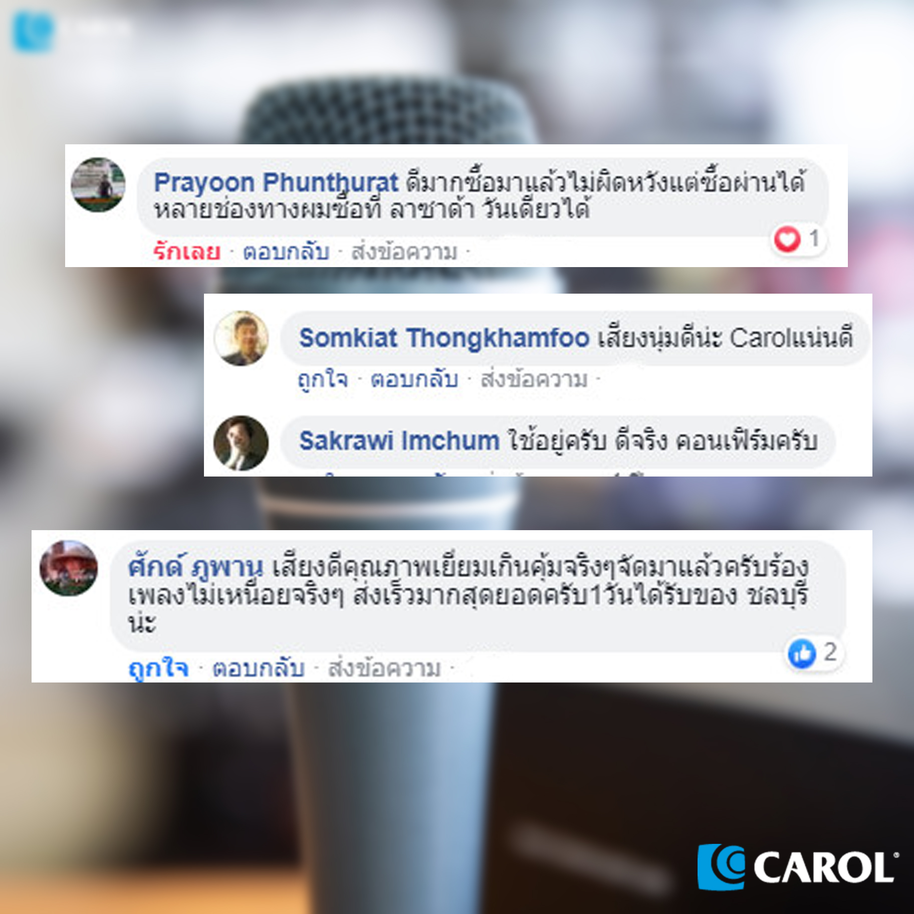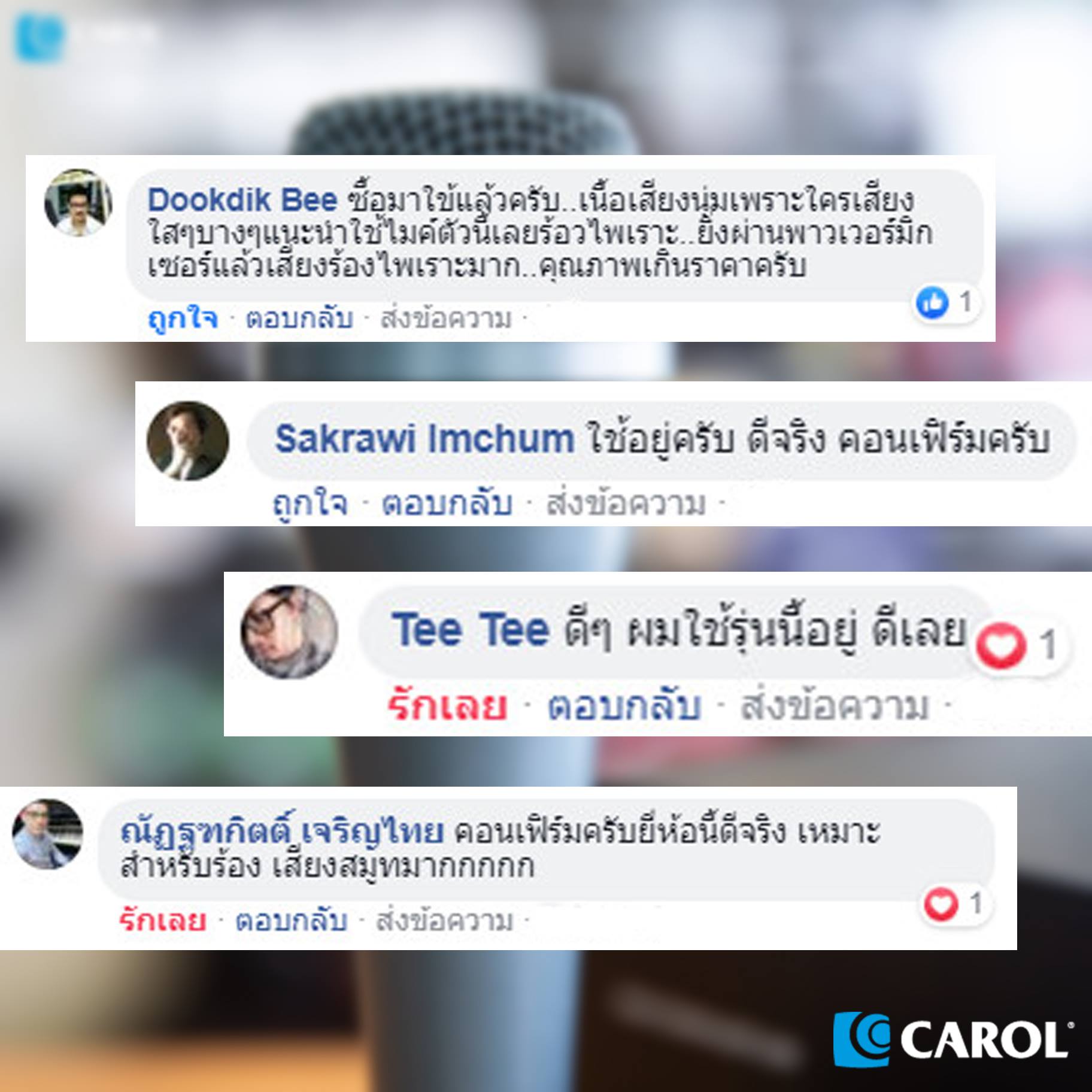 ภายใต้แบรนด์ของตัวเอง โดยยึดหลักคุณภาพระดับโลก ในราคาสบายกระเป๋า ทำให้มีศิลปินมากมายเลือกใช้ไมโครโฟน Carol และสินค้าต่างๆในทุกๆงานระดับโลกมากมาย