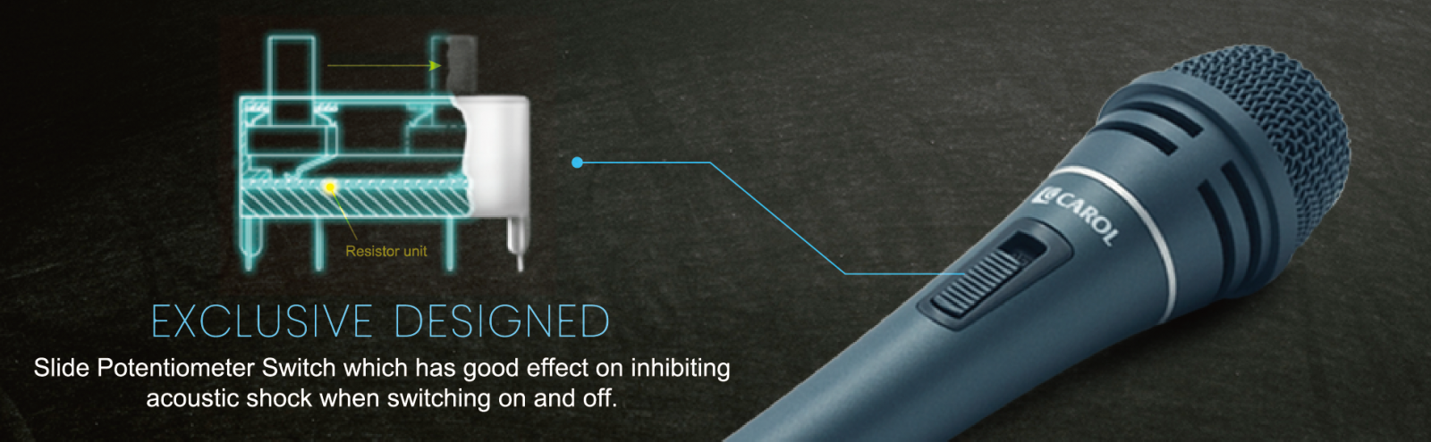 ไมโครโฟน Carol Σ-plus 2 มี Silent Switch คุณสมบัติเมื่อเปิดปิดไมโครโฟนจะไม่มีเสียงการกระแทกหรือการลัดวงจรของไฟฟ้า